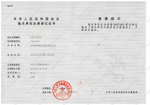 報(bào)關(guān)單位注冊(cè)等級(jí)證書(shū)